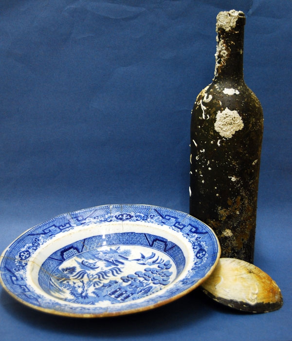 Apskatāmi autentiski no ūdens dzīlēm izcelti porcelāna priekšemti un fotogrāfijas ar ūdenslīdējiem - arheologiem.