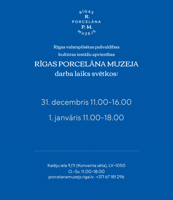 Rīgas Porcelāna muzejs 31.12.2025 un 01.01.2026 būs vaļā: