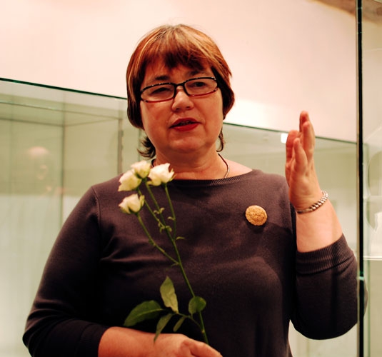 Viņa iepazīstinās ar īpašu porcelāna dekorēšanas tehniku - dekoliem, kā arī dalīsies ar zelta lietošanas tehniskajiem aspektiem.